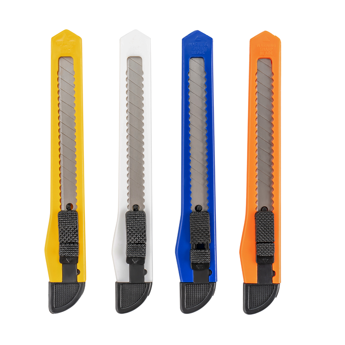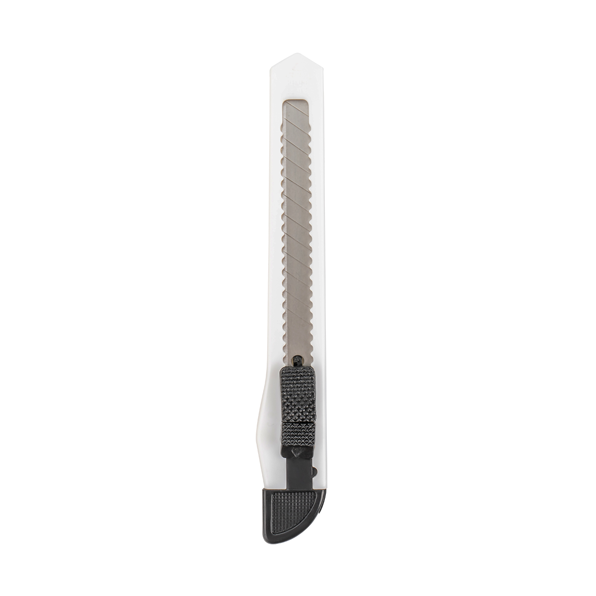 CX-909 Box Cutter Blade er konstrueret af stål af høj kvalitet, sikrer pålidelig holdbarhed og ydeevne. En manuel låsemekanisme fikserer bladet sikkert i position, forhindrer utilsigtet udvidelse eller tilbagetrækning under brug og garanterer både sikkerhed og skærer præcision. Denne værktøjskniv er alsidig til forskellige applikationer, herunder skolernes håndværksklasser, behandling af kontordokument og andre daglige scenarier. Dens lette design og portabilitet gør det til en vigtig ledsager for både akademiske og professionelle miljøer.